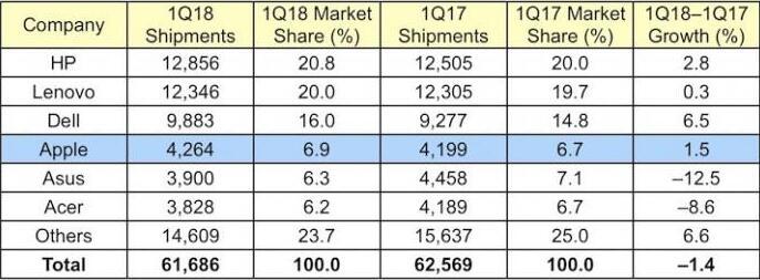 进入到今年,据Gartner发布的2018年第一季度全球PC市场跟踪报告显示,虽然第一季度整体市场出货量下降了1.4%,联想的市场占有率仅提高了0.3个百分点,出货量以1235万台位列第二,与排名第一的普惠相比,相差仅51万台。但联想PC业务的营收增长却达到了16%。即在出货量增长不大的情况下,营收增长却达到了16%,由此看来,联想PC业务的健康水平大幅度提升,造血能力明显高于市场平均水平。