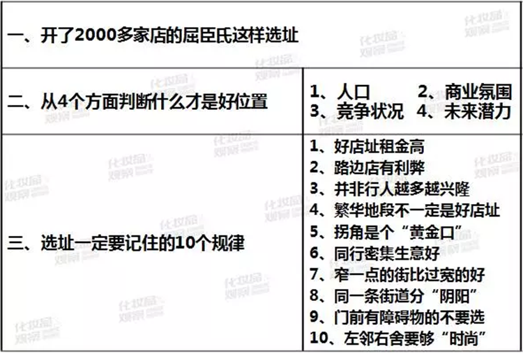开一家化妆品店,选址非常重要,甚至在一定程度上决定了开店的成败。但是选一个好的位置并不容易,特别是想快速拓店的连锁店更是面临选址难题。是没有好位置了吗?其实是你不会挑!